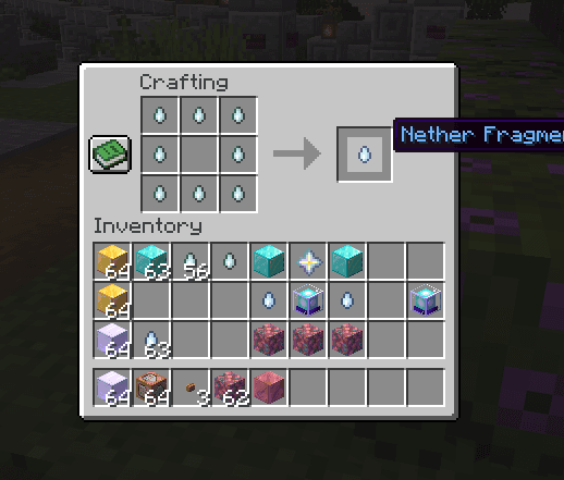 Step 2. Using a crafting table make a circle with Ghast Tears. You will receive a Nether Fragment.