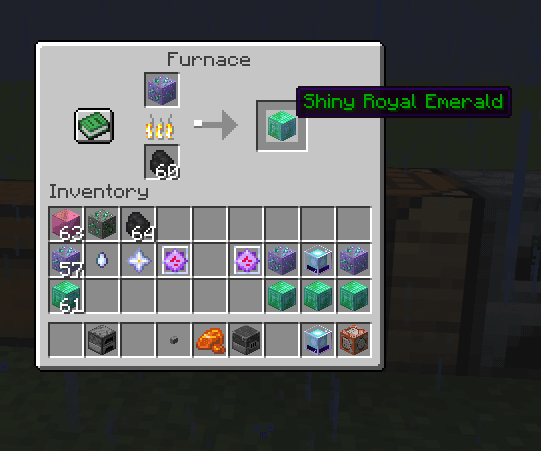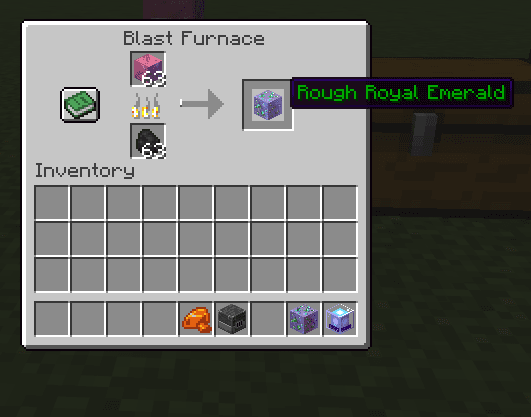 Step 2. Using a Furnace smelt Rough Royal Emerald. You will receive a block of Shiny Royal Emerald.